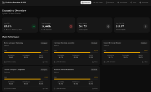Executive Intelligence Layer: The pilot also gives leadership visibility into operational performance, including via OEE trends by plant, line, and shift; downtime root cause analysis and cost impact; predictive alert effectiveness and operator response rates; and financial impact tracking that reports margin improvement per production line.